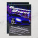 Dê a partida e corra até a linha de chegada para celebrar o aniversário do seu filho. Este convite exclusivo foi desenhado digitalmente para ilustrar um carro esportivo muito rápido em um concurso de corrida noturna sem que ninguém possa alcançar