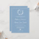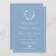 Convite de casamento clássico de azul empoeirado de crista monográfica botânica com código QR e informações mais detalhadas no verso.