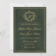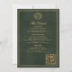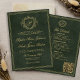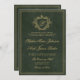 Convite Crest monogram QR code emerald green gold wedding
