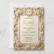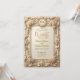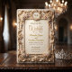Defina o tom da sua cerimônia formal de primavera com este design luxuoso inspirado no barroco, apresentando elaboradas volutas e uma crista floral romântica.