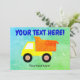 Um belo caminhão de brinquedo. Versão antiga do impressão de papel. Convites personalizados para crianças.
