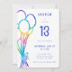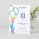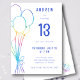 Faça seu aniversário inesquecível com este convite de aniversário branco e azul desenhado à mão. Apresentando ilustrações divertidas de balões do arco-íris e tipografia ousada em um layout moderno e mínimo, este convite para na moda é perfeito para celebrar qualquer marco - seja ele ou ela fazendo 16, 18, 21, 30, 40, 50 ou mais! Este convite totalmente personalizável permite personalizar o nome, a idade, os detalhes da festa e as informações de RSVP. A paleta de cores do eterno adiciona um toque divertido que é ideal para meninos, meninas e adolescentes — seja você hospedando uma festa de brunch, piscina ou celebração de janto.