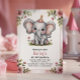 Celebre o aniversário da sua garotinha com este adorável convite de aniversário de elefante pastel! Perfeito para as festas de aniversário infantis e infantis, esta design apresenta um elefante giro, assim como flores cor-de-rosa e borda aquarela — tudo em cores suaves e femininas. Este convite diz "4º aniversário", mas você pode facilmente mudar o ano de aniversário para o que quiser. Este convite de aniversário editável é fácil de personalizar com os detalhes da sua festa — basta clicar em "Personalizar" para atualizar o nome, a idade, a data, a hora, o ano de aniversário e a localização. Aproveite!