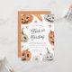 Convide uma equipe de pequenos fantasmas para uma diversão de Halloween com este truque fofo e charmoso de Halloween ou tratando o convite de festas. Design apresenta delicadas ilustrações de aquarela de jack-o-lanternas entalhadas, abóboras, gourdes e milho doce.