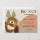 Procurando uma maneira divertida de celebrar o aniversário do seu filho? Experimente este Convite de aniversário de Sasquatch de Pé Grande. Ele apresenta uma ilustração em estilo cartoon de um Sasquatch na frente, com a floresta de abstrato no fundo. Adicione seus detalhes de festa para um convite de aniversário gentil.