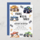 Atenção a todos os pequenos animais de festa! Prepare-se para reverter a diversão com o nosso Convite aos Caminhões de Carro para Jovens Selvagens e Três Crianças aniversário de 3 anos. Adorado com carros monstruosos adoráveis e vibrantes, este moderno roteiro de tipografia nos convida a participar da celebração. Vamos caminha até o terceiro ano de vida com uma cesta de aniversário épica! Esses convites podem ser impressos e compartilhados com seus amigos ou baixados digitalmente para uma experiência fácil de planejamento de festas. Não perca a oportunidade de se divertir monstruosamente nesta terceira festa de aniversário!