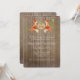 COLOR PALETTE: COLEÇÃO vermelha, bronzeada, castanha e verde de DESIGN: Um Janto de ensaio Convidado ou Janto Pai de Groom Convidado para convidar amigos e família para a festa e celebrar esse evento especial. Este design moderno da floresta foi criado da trabalho de arte de cor d'água original pintada por Audrey Jeanne Roberts e então desenhada graficamente neste jogo de convite de casamento correspondente. Um par de belas raposas sentam-se em ambos os lados de um buraco de madeira esculpido em forma de coração com a noiva e as iniciais do noivo como um monograma no meio. O fundo é uma cerca rústica de madeira de celeiro com conselhos desbotados. O mesmo coração se repete no reverso com seus monogramas. Design simples e contemporâneo que é perfeito para um casamento informal ou ao ar livre que tem natureza ou tema natural.
