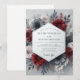 Embrace a darkly romantic aesthetic with this dramatic floral design. A stunning arrangement features lush crimson peonies and charcoal anemones, contrasted beautifully with delicate ivory roses. Set against a soft, misty background, the composition is accented with silvery-grey foliage, creating a moody and sophisticated atmosphere.