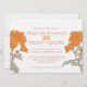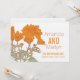 Desenho de flor de crisântemo floral com sobreposição de cor gráfica remarcado com um novo convite de data de casamento de outono. Edite este convite com seus próprios nomes e detalhes do casamento. Perfeito para um tema de outono remarcado brilhante laranja, branco e marrom agora para casamento, noivado ou aniversário. Desenho e arte gráfica únicos por Sarah Trett. www.sarahtrett.com para www.mylittleedenweddings.com