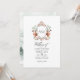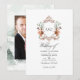 Fotografia de casamento em aquarela com uma crista temática de floresta caprichosa personalizável com as iniciais da pessoa celebrada. A foto no verso é opcional. Se preferir removê-la, desça até o final de "Personalize este modelo" e clique em "Editar Usando a Ferramenta de Design". Na Ferramenta de Design, você pode editar, dimensionar, excluir ou mover qualquer texto ou elemento de design que desejar.