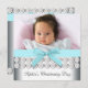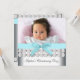 O convite para batizar de bebê de fotografia azul-esbelta elegante. Este belo convite de batizar em azul lacrimogêneo é facilmente personalizado para o seu evento, adicionando detalhes da sua fotografia e evento, estilo da fonte, tamanho e cor da fonte e texto.