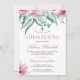 Um primavera moderno ou uma menina de verão ou um convite batizante de criança apresentando uma cor d'água, flores rosas de magnólia cor-de-rosa, folhagem verde e folhas de eucalipto e um roteiro clássico de caligrafia manuscrito. ++++++++++ É fácil personalizá-lo com seus detalhes! ++++++++ Adequado para cerimônias e recepções florais, de jardim exterior ou de jardim de Verão elegantes de recém-nascidos.