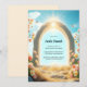 Celebre a alegria da Páscoa com este convite deslumbrante para um brunch religioso de Páscoa. Com flores suaves de primavera e um céu azul sereno com pombas voando acima, este design simboliza lindamente a renovação e a esperança. Perfeito para uma reunião significativa de Páscoa com familiares e amigos, este convite captura a essência espiritual do feriado.