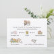 Este convite de chá de noiva maravilhosamente único apresenta animais e ícones de arte rabiscado caprichoso, tipografia no estilo manuscrito e espaço no verso para detalhes adicionais. O tema é 'cronologia do casamento', que é uma maneira popular de deixar os convidados saberem o que acontece quando em imagens. Para itens correspondentes e edições personalizadas, entre em contato com a Designer LeahG.