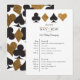 Mais fácil de ler, isto é perfeito para uma viagem corporativa a Las Vegas ou um evento temático de cassino, este cartão de cronologia apresenta brilho dourado falso e naipes de cartas pretas sobre um fundo branco com texto totalmente personalizado e um verso correspondente.