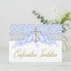 Convite de primeiro comunhão meninos com linda cruz azul e dourada. Este elegante convite de primeiro comunhão branco e azul é facilmente personalizado para o seu evento, bastando clicar no botão "Personalize!" para começar a adicionar os detalhes do evento, estilo de letra, tamanho e cor da letra e texto. Alguns gráficos gráficos©delightful-doodles. Por favor, note que todos os adesivos, cartões e desenhos de convite que você encontrará na Zazzle são gráficos impressos sem joias, laços, relevos, relevos ou peças ou partes adicionadas. com
