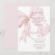 Convite Cruz de Ouro com Flores Rosa Laço Batismo Rosa