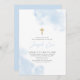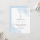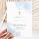 Convite em aquarela azul com cruz religiosa dourada fosca. Um convite de batismo ou batizado moderno e elegante para o dia especial do seu filho.
