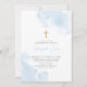 Convite Cruz Dourada Menino em Aquarela Azul Batismo e Bat