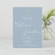 Um elegante convite de batismo com um nome de assinatura de escrita chique. Personalize com suas informações especiais de batismo ou batizado em letras chiques sobre um fundo azul empoeirado. Projetado por Thisisnotme©