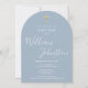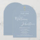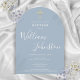 Um convite de batismo ou batizado elegante com uma assinatura de nome em letra cursiva sofisticada. Personalize com as informações especiais do batismo ou batizado em letras elegantes sobre um fundo azul poeirento. Concebido por Thisisnotme