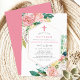 Convite Cruz Geométrica Floral de Peões Rosa Elegantes