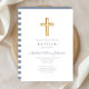 Convite Cruz Religiosa Azul Stripes Menino Batismo