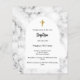 Um quadro de arco branco e impressão de mármore como fundo. Uma cruz ouro. Personalize e adicione um nome e detalhes. 1 folha = 1 convite impresso de borda a borda.