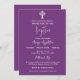 Um convite à ameixa com uma cruz floral branca para batismo ou batizar. Personalize os detalhes e mude batismo para batizar, se preferir. Parte da coleção Floral Cross.