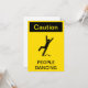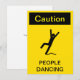 Este design é uma paródia da clássica placa de "Cuidado com piso escorregadio quando molhado" que mostra um homem em uma pista de dança escorregadia com um sorriso no rosto.