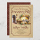 O velho mundo russo gourmet cozinha italiana "Stock the Kitchen" design do Partido do Aquecimento Familiar em um fundo envelhecido com tom duplo de ouro e quadro vermelho de bronze escuro. A parte de trás apresenta uma moldura de tom de ouro em forma de diamante sobre um fundo vermelho de bronze escuro.