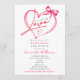 Celebrate the bride-to-be with this unique, whimsical modern script bridal shower invitation, perfect for a tea or coffee party with a unique theme: A Cup of Love. The design features a watercolor illustration with a pink heart tied with a bow, and a small hand-drawn tea or coffee cup marked with a little heart.