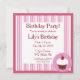 Estes adoráveis convites para cupcakes de baunilha são a forma perfeita de celebrar o aniversário de um amado no estilo! A design apresenta um cupcake bonito com uma cereja em cima contra listras brancas e cor-de-na moda! Excelente para qualquer coisa desde o aniversário de uma criança até uma festa de aniversário porque todos os campos de texto são personalizáveis!