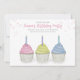 Este design apresenta cupcakes de aquarela de aniversário fofinhos, com um código QR para informações sobre festas online no site e um ícone no Facebook para a página de eventos nas redes sociais. um doce colorido pastel cor-de-rosa, um bolo de sobremesas para velas de aniversário, um texto de escrita para caligrafia na moda, uma fonte moderna de tipografia, um aniversário de menina adorável, com rosa púrpura azul, uma adorável criança festa de aniversário, um doce glacé de aniversário de comida, para qualquer convites de festas aniversário de criança