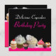 Convite CUPCAKES DELICIOSAS FESTA DE ANIVERSÁRIO cor-de-ro
