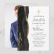 Convite Custom Photo Black Agate Gold First Holy Communion