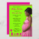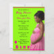 This customizable baby shower invitation is perfect for any baby shower. The invite displays an African American mother-to-be wearing natural hair with teddy bear, gift, baby bottle, balloon and infant body suit.