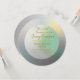 Design Style: Modern Iridescent with Pastel Holographic Gradient and Die-Cut Circular Shape.