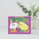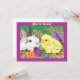 Convite com pintura digital da arte de um coelho e pintinho com ovos da páscoa