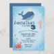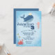 Este encantador convite de aniversário personalizado mostra o tema Sob o Mar com criaturas coloridas do mar. Uma imagem de uma baleia jovem com uma coroa de príncipe ouro está nadando perto do topo. Um caranguejo bobo está rastejando ao longo do fundo, e um pequeno cavalo marinho bonito está nadando perto do centro à esquerda. O fundo apresenta um padrão de água que faz os animais e os peixes aparecerem sob o mar.