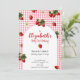 Convite Cute Berry First Birthday Strawberry Red Gingham