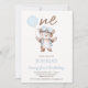 Cute Blue Brown Beary First Birthday Bear Birthday Invitation