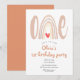 Um convite de foto de primeiro aniversário fofo com tipografia boho, arco-íris em aquarela e coração. Criado por Thisisnotme©