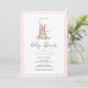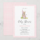 Cute hand painted watercolor Bunny Baby girl Baby Shower invitation with pink gingham.