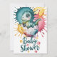 Convite Cute Dinosaur with Watercolor Splash Baby Shower