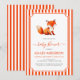 Convite Cute Fox Girl Baby Shower Watercolor & Red Stripes