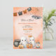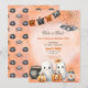 Convite de Halloween de fantasma fofo em laranja, preto e branco .
