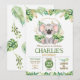 Celebrate your little one with this adorable Koala Invitation featuring a sweet baby koala surrounded by lush tropical greenery and elegant gold accents. This charming design blends soft watercolor elements with a modern jungle theme, making it perfect for a birthday party, baby shower, or safari-themed celebration.