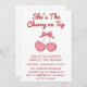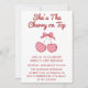 Convite Cute Pink Bow Cherry on Top First Birthday