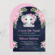 Convite Cute Pink Bow Floral Elephant Navy Baby Shower